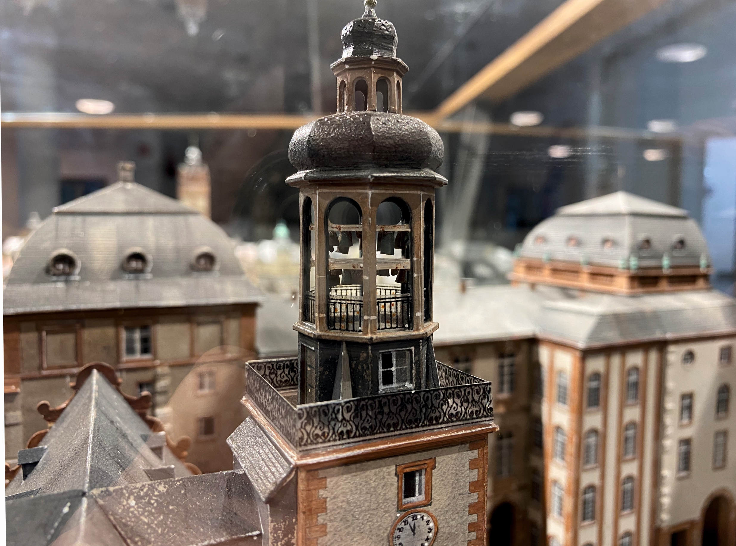 In jahrelanger Arbeit, gegründet auf profunden Untersuchungen zur Topographie, Stadtarchitektur und Quartiersgeschichte hat Christian Häussler ein Modell der nahezu kompletten Darmstädter Altstadt im Maßstab 1 : 160 geschaffen. Maßgebliche Unterstützung hat der Künstler dabei von Vorstand und einzelnen Mitgliedern unseres Vereins erhalten. Nachdem das Altstadtmodell einige Jahre im zugigen und feuchten Obergeschoss des Hinkelsturms aufgebaut war, hat es nun nun seinen Platz im Foyer des Justus-Liebig-Hauses gefunden.